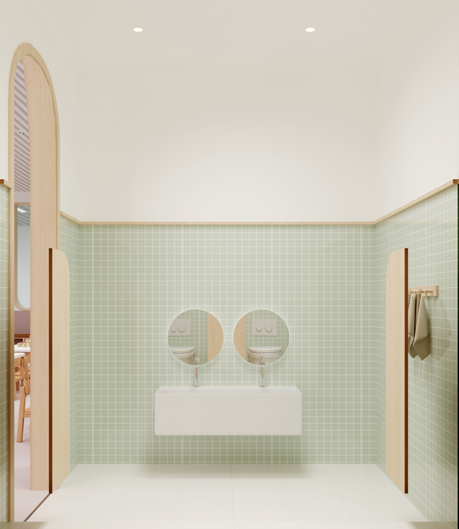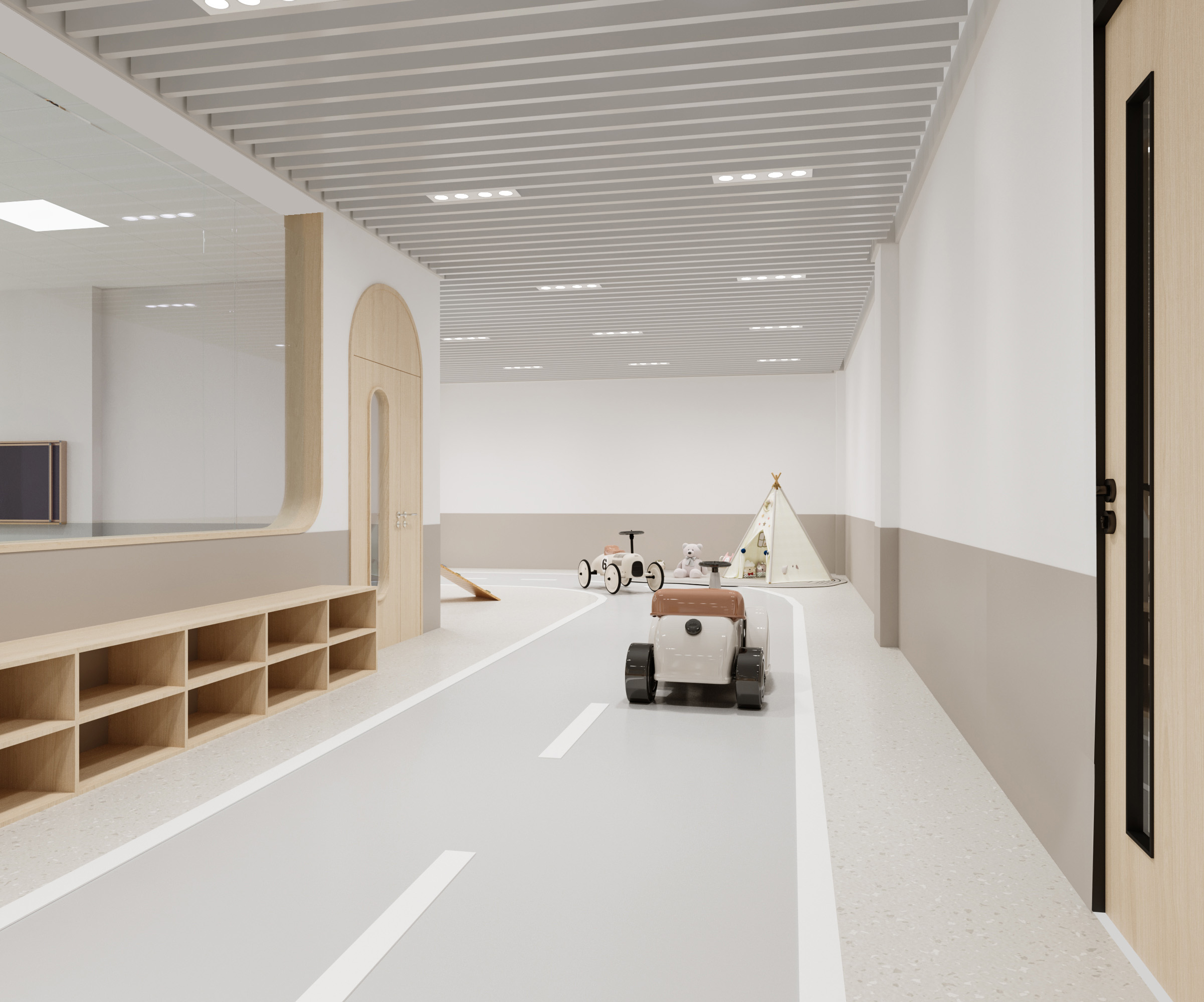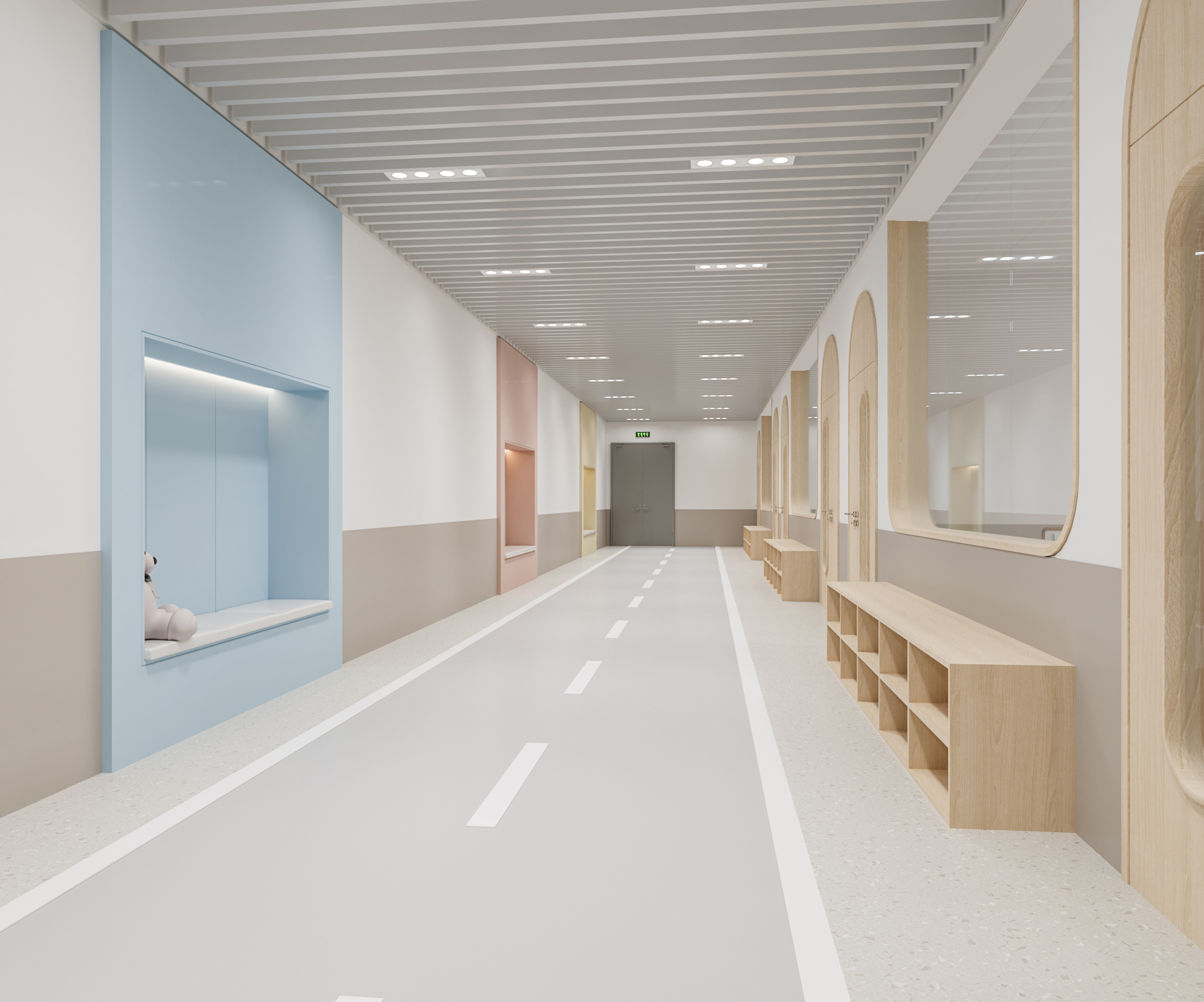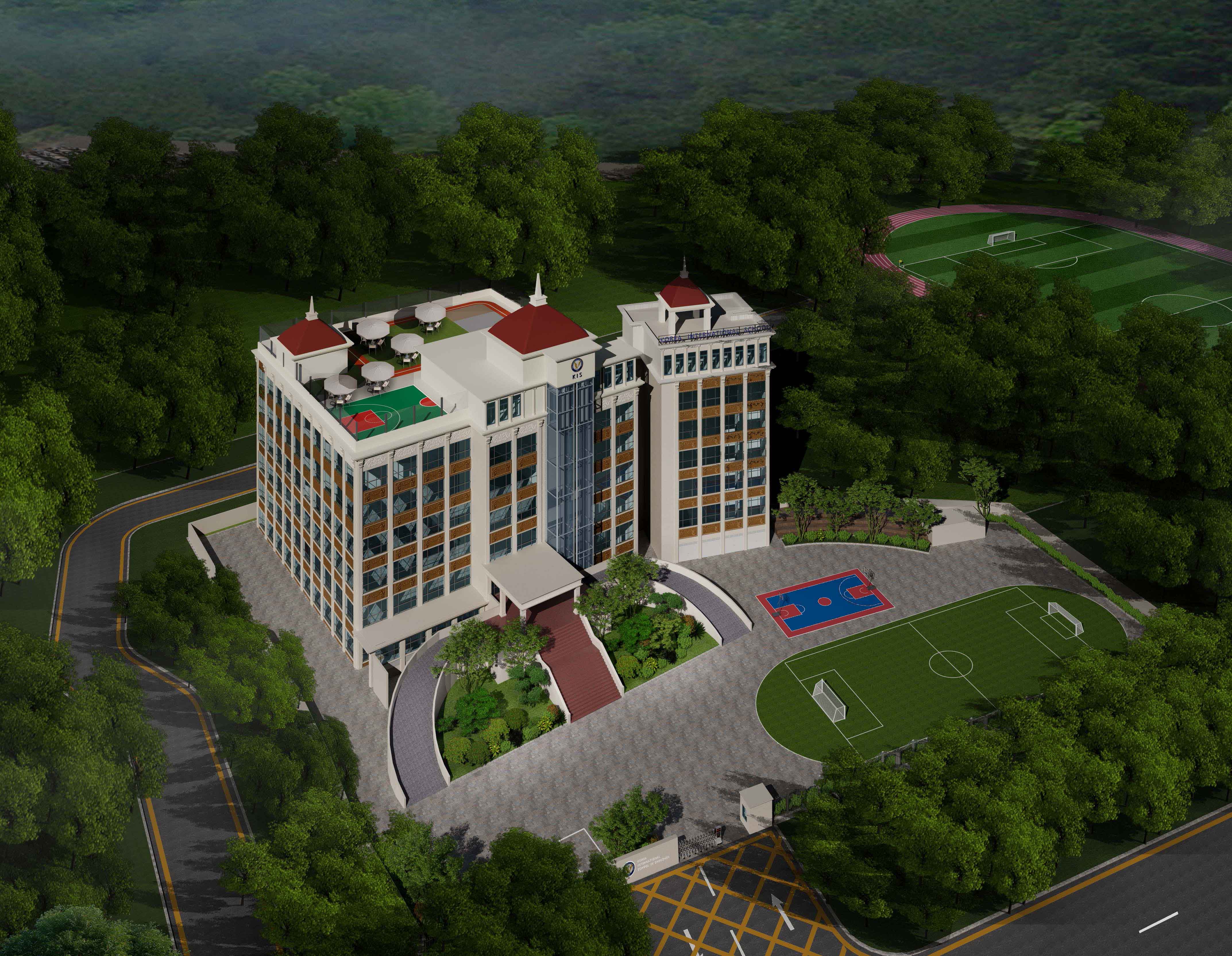 該學(xué)校設(shè)計(jì)圍繞 “助力成長,融合美學(xué)與功能” 展開。外觀上,建筑風(fēng)格典雅,紅頂白墻搭配大面積玻璃,兼具美觀與采光性,周邊運(yùn)動(dòng)場地滿足體育教學(xué)。室內(nèi)大廳以大理石地面、木質(zhì)墻面營造大氣莊重感,學(xué)校標(biāo)識醒目。幼兒活動(dòng)區(qū)采用柔和色調(diào)與圓潤造型,搭配童趣設(shè)施,激發(fā)孩子探索欲。衛(wèi)生間用清新綠瓷磚與木質(zhì)隔斷,安全又舒適。運(yùn)動(dòng)場館色彩明快,專業(yè)場地設(shè)計(jì)保障運(yùn)動(dòng)需求。整體空間既符合教育功能,又通過溫馨、活力的設(shè)計(jì),為師生打造優(yōu)質(zhì)學(xué)習(xí)生活環(huán)境。