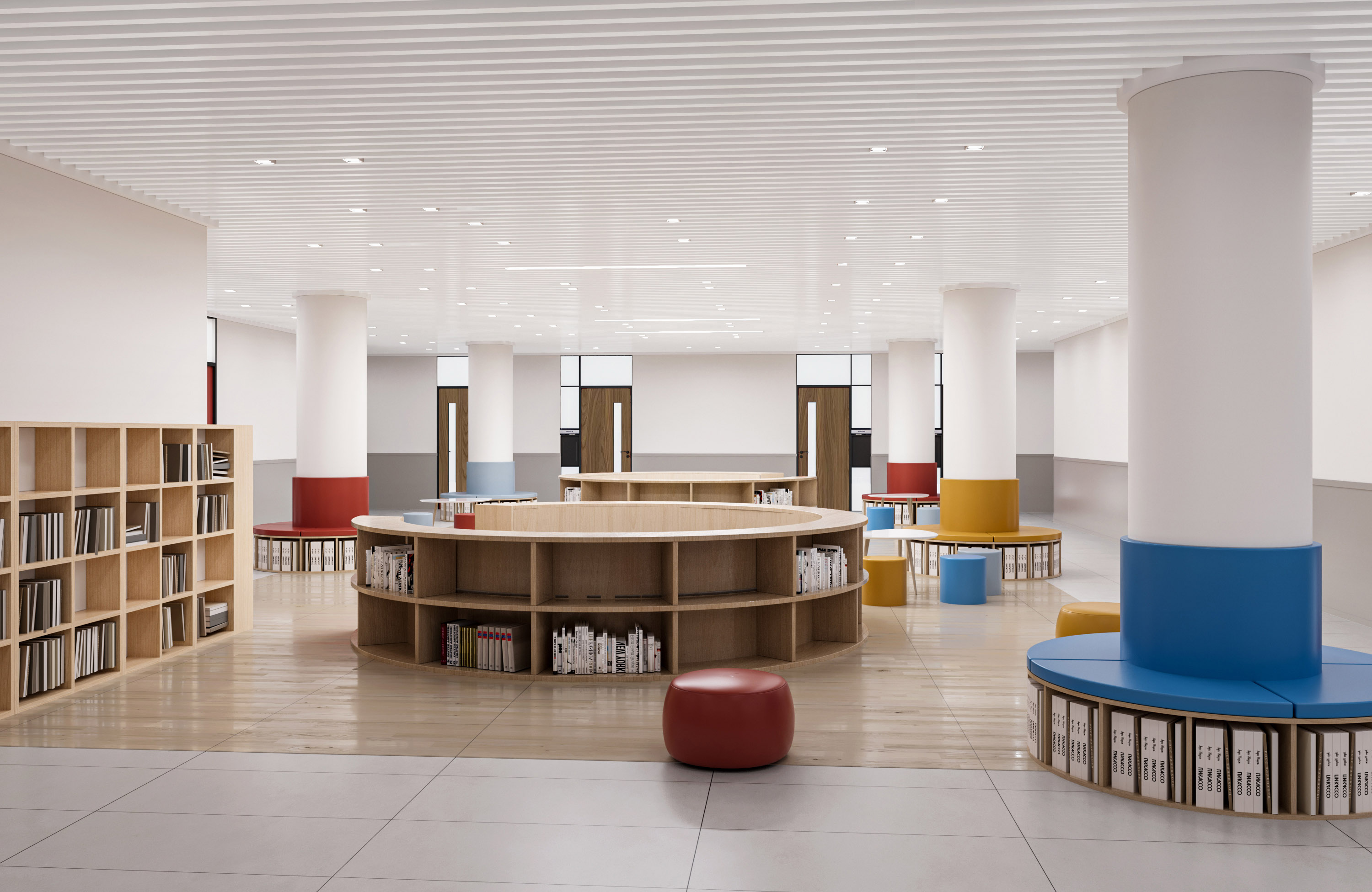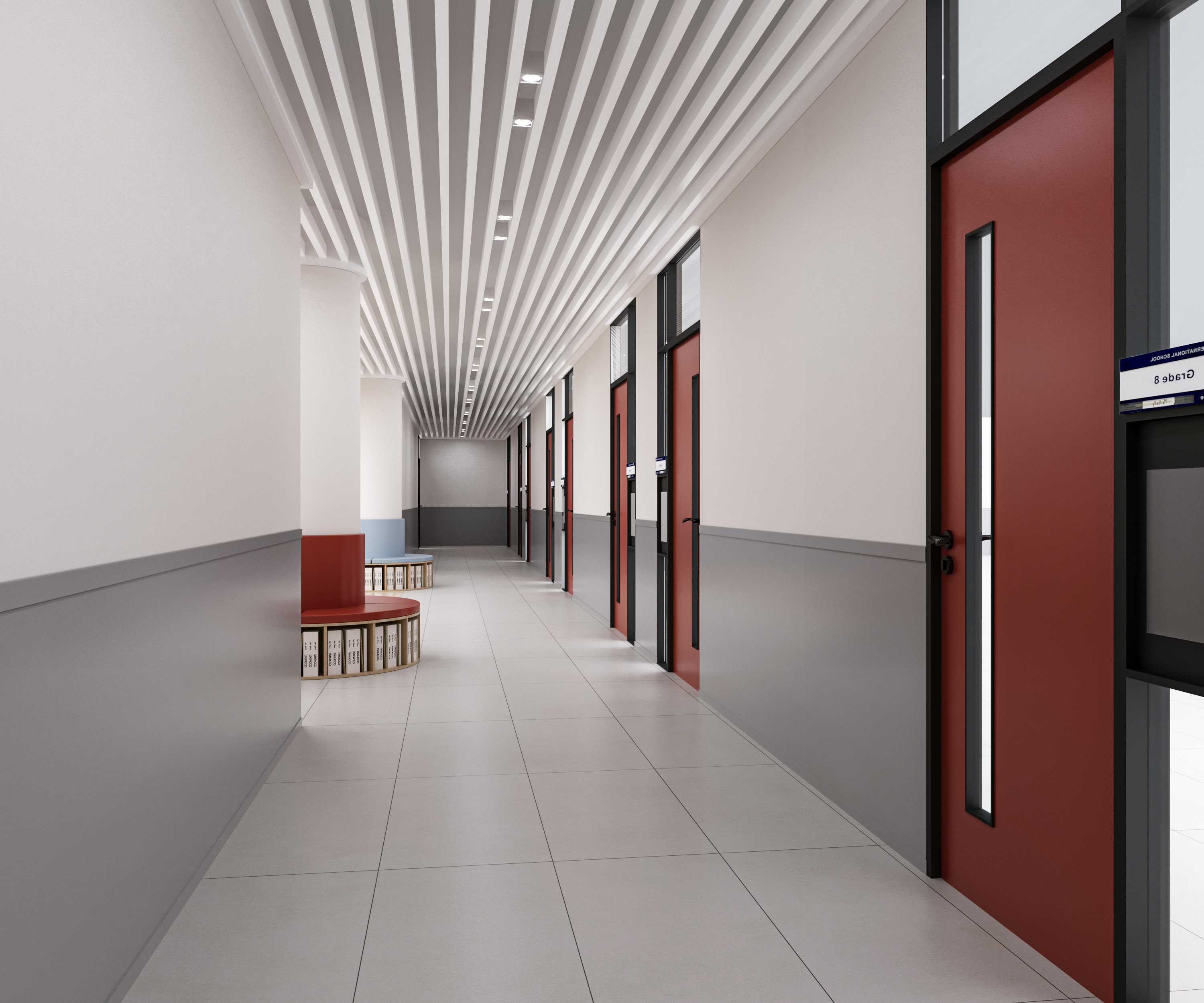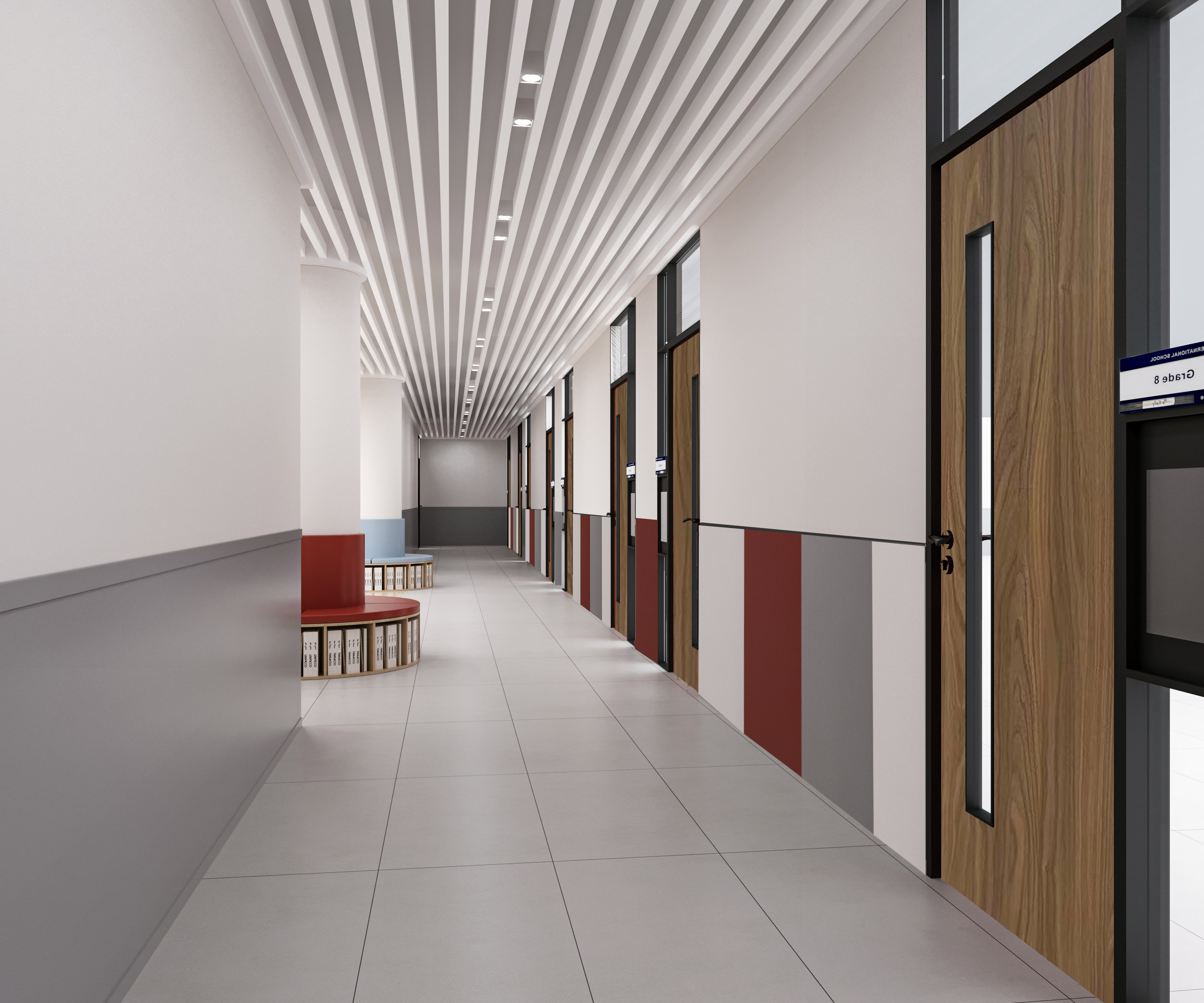 本校園設(shè)計以 “賦能成長,融多元美學(xué)與實用功能” 為核心??臻g運(yùn)用柔和色調(diào)與木質(zhì)元素,營造溫馨氛圍。教室布局規(guī)整,采光充足,配套童趣設(shè)施與收納空間,助力學(xué)習(xí)與探索。走廊線條簡潔,色彩搭配活潑,兼具通行與展示功能。公共區(qū)域如大廳,通過簡約家具與品牌標(biāo)識,彰顯校園文化;閱讀區(qū)以弧形書架、多彩坐凳,打造舒適閱讀場景。整體設(shè)計既契合教育需求,又以靈動、溫暖的視覺語言,為師生構(gòu)建優(yōu)質(zhì)學(xué)習(xí)生活環(huán)境。