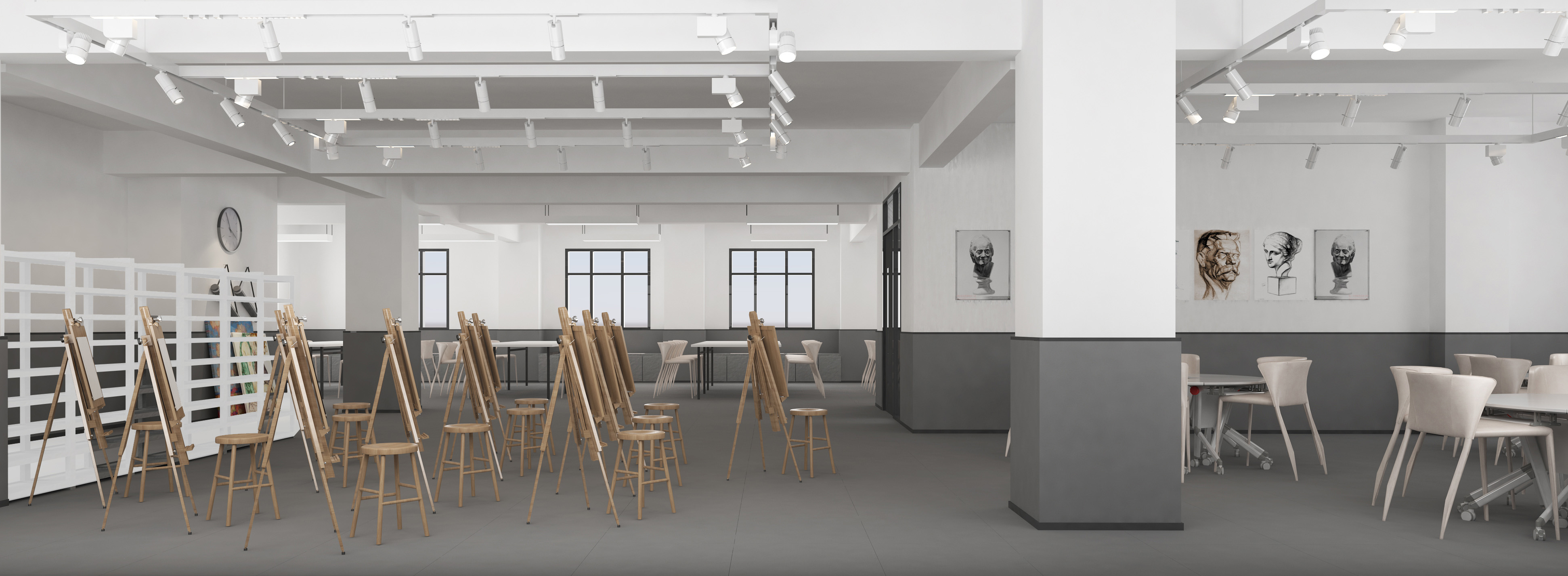 本校園空間設(shè)計圍繞 “簡約高效,激發(fā)多元學(xué)習(xí)” 展開。整體采用簡潔的色彩搭配,營造出干凈、明亮的氛圍。教室布局規(guī)整,桌椅擺放有序,利于知識傳授;畫室、音樂室等功能空間,通過合理的區(qū)域劃分與專業(yè)設(shè)施配備,滿足藝術(shù)創(chuàng)作需求;圖書館以木質(zhì)書架為核心,打造出靜謐的閱讀角落。各空間既獨立又相互呼應(yīng),旨在為師生提供一個集學(xué)習(xí)、交流、藝術(shù)實踐于一體的優(yōu)質(zhì)校園環(huán)境。